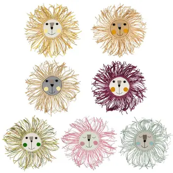 Cartoon Lion Hanging Decorations Handmade Cotton Thread Weaving Animal Head Ornament Kids Room Wall Home Accessories Leather Bag