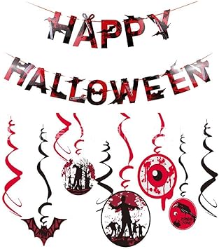 Tazemat 12pcs Halloween Hanging Decorations Home Ceiling Swirl Decor Carnival Parties Cartoon Pendant Ornaments Supplies Spiral Streamers Embellishment Pumpkin Cat Witch Ghost Bat Skeleton Spider Buy Online In Bahamas At Desertcart Productid