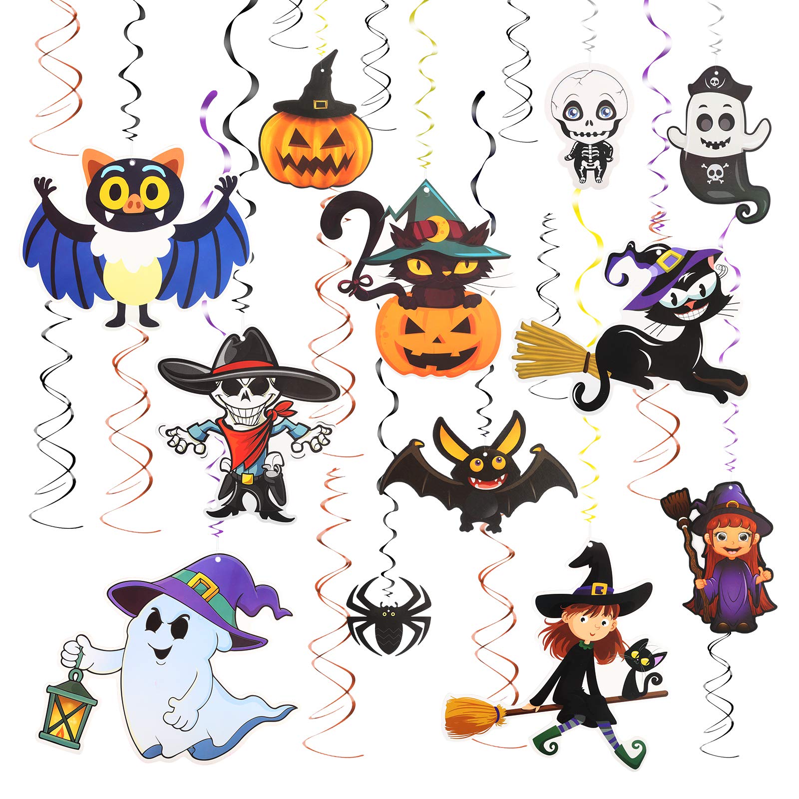 Streamers Toys Games Tazemat 12pcs Halloween Hanging Decorations Home Ceiling Swirl Decor Carnival Parties Cartoon Pendant Ornaments Supplies Spiral Streamers Embellishment Pumpkin Cat Witch Ghost Bat Skeleton Spider