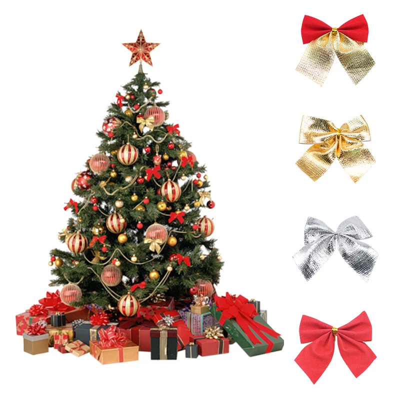12pcs Set Gold Silver Red Bowknot Christmas Tree Hanging Decoration Xmas Ornament For Diy New Year Christmas Party Decorations Christmas Bows Aliexpress