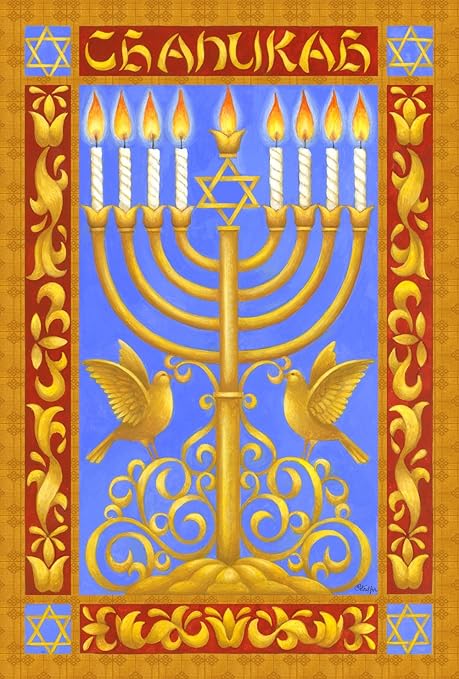 Amazon Com Toland Home Garden Festival Of Lights 28 X 40 Inch Decorative Ornate Chanukah Menorah Candle Hanukkah House Flag 109697 Gold Red Purple Garden Outdoor