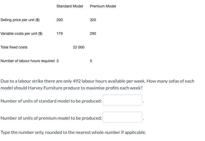 Solved Harvey Furniture Manufactures Two Models Of Sofas Chegg Com