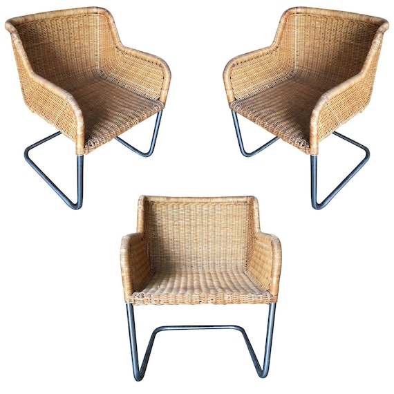 Model D43 Wicker And Chrome Chairs By Harvey Probber Set Of Etsy