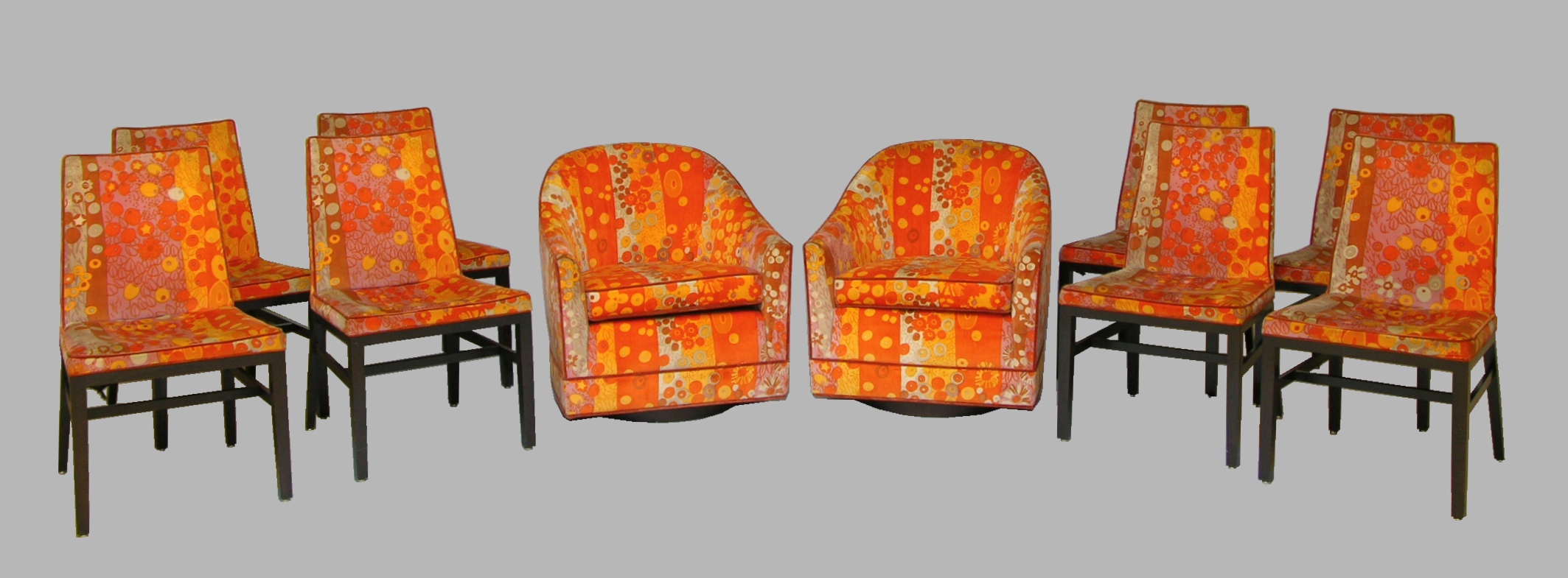 Eight Matching Dining Chairs And Two Matching Harvey Probber Swivel Chairs Upholstered In Original Jack Lenor Larsen 09 22 07 Sold 690