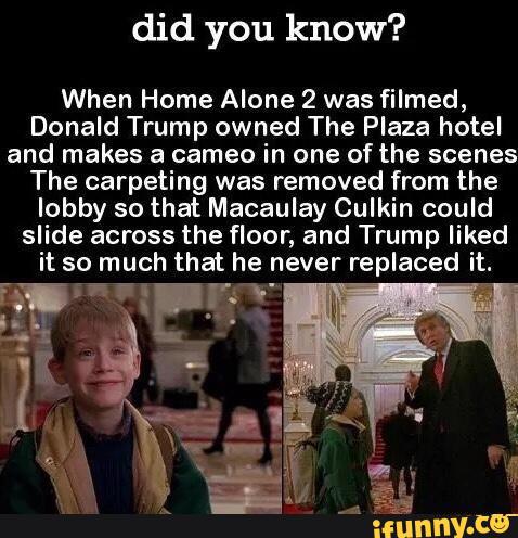 Did You Know When Home Alone 2 Was Filmed Donald Trump Owned The Plaza Hotel And Makes A Cameo In One Of The Scenes The Carpeting Was Removed From The Lobby So