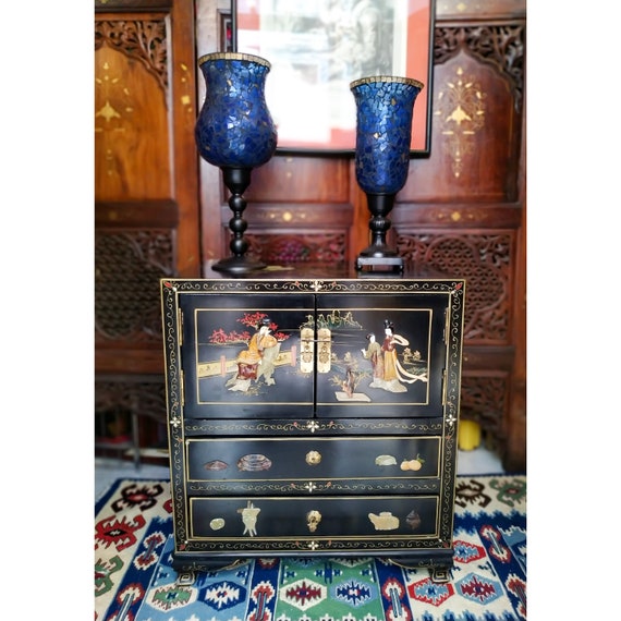 Vintage Chinese Black Lacquer Wooden Furniture Asian Etsy