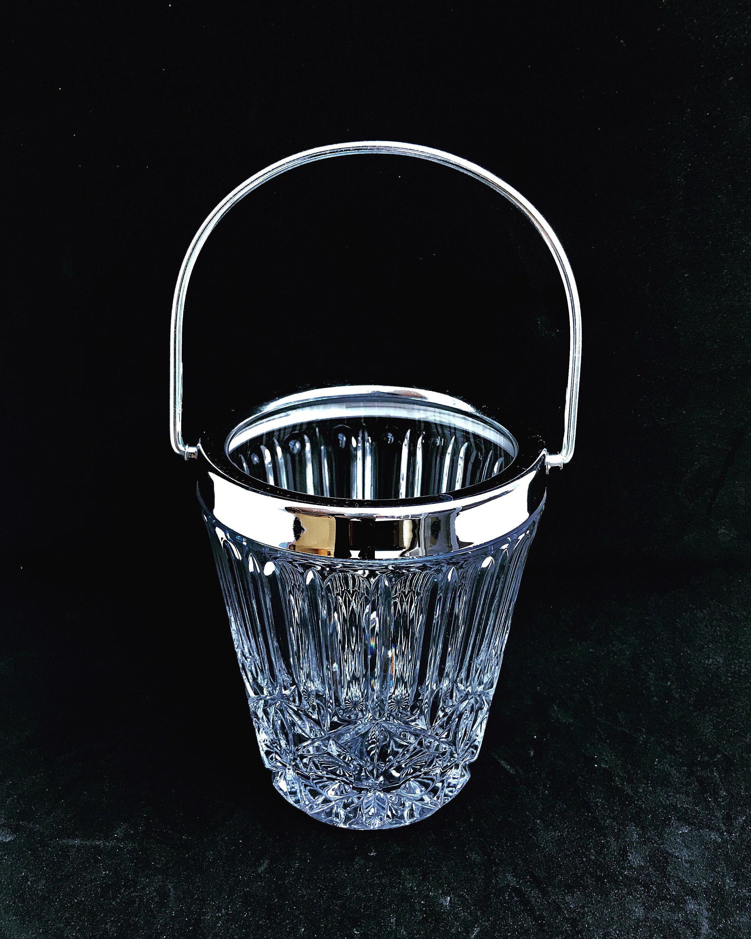 Crystal Ice Bucket 50s Carved 50s With Silvered Metal Vintage Accessoires Bar Bar Cart Decor Christmas Gift Home Bar Decor