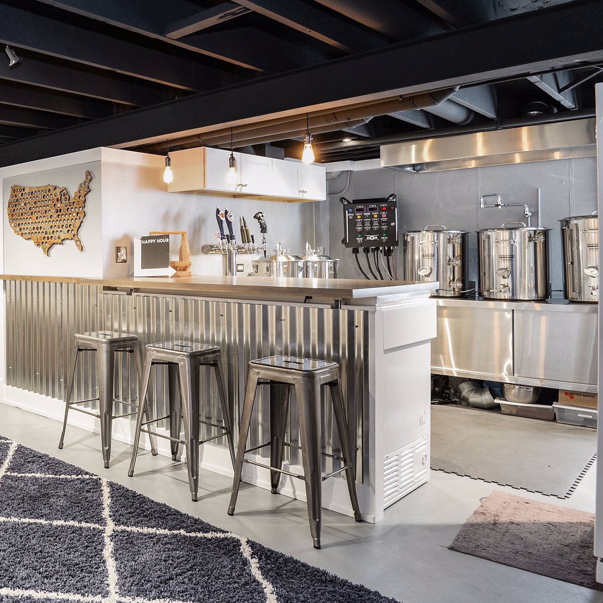 Basement Remodel Welcomes An Industrial Style Home Brewery