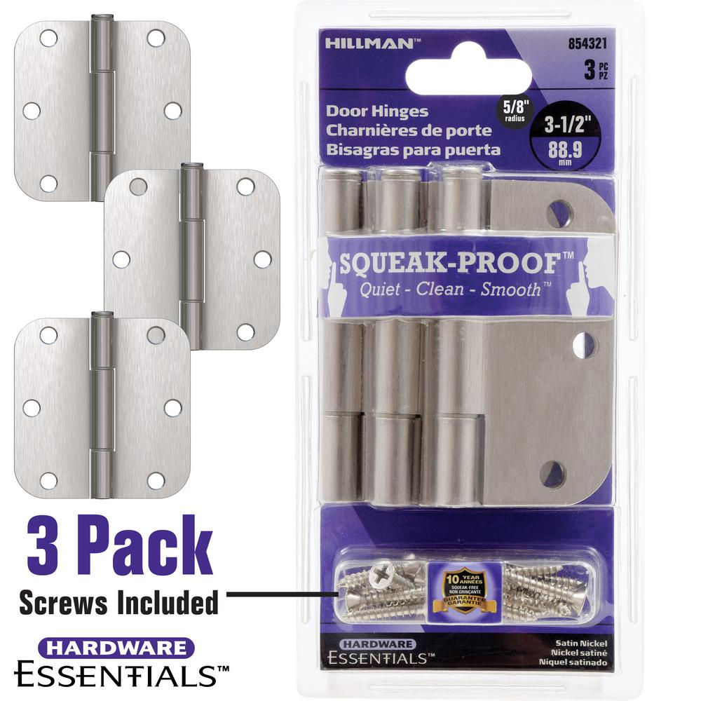 Everbilt Part 14874 Everbilt 3 1 2 In Satin Nickel 5 8 In Radius Security Door Hinges Value Pack 3 Pack Utility Hinges Home Depot Pro