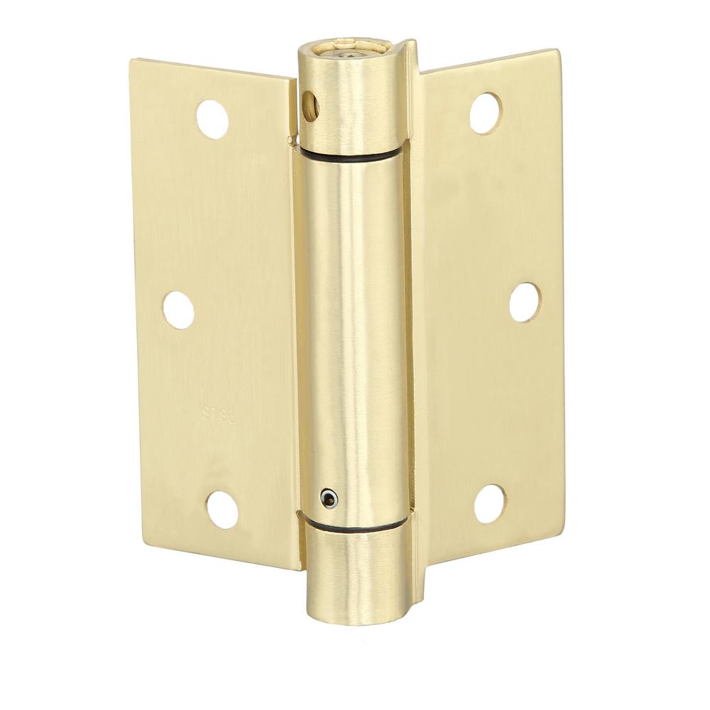 Everbilt 3 1 2 In Satin Brass Adjustable Spring Door Hinge 15534 The Home Depot