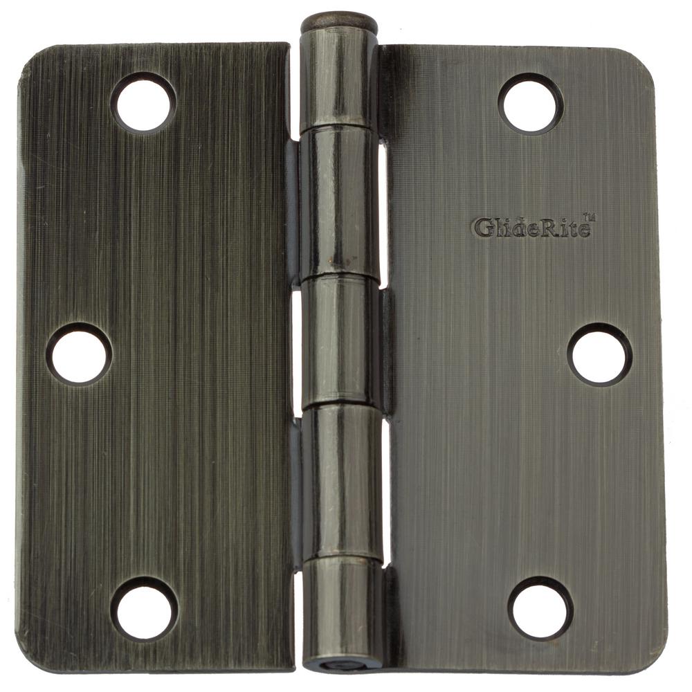 Gliderite 3 1 2 In Antique Brass Steel Door Hinge 1 4 In Corner Radius With Screws 12 Pack 3514 Ab 12 The Home Depot
