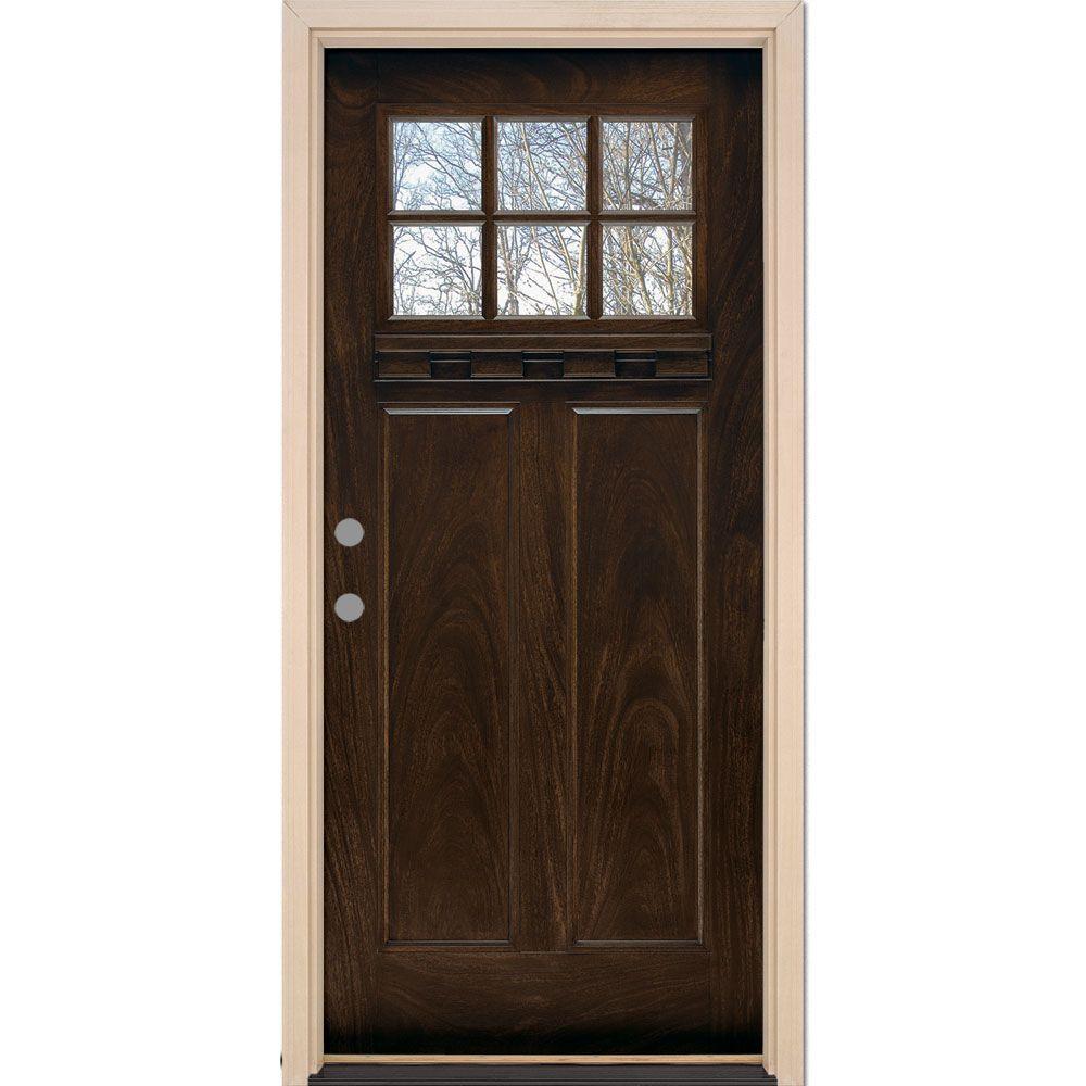 Feather River Doors 37 5 In X 81 625 In 6 Lite Craftsman Stained Chestnut Mahogany Right Hand Inswing Fiberglass Prehung Front Door Ff3795 The Home Depot