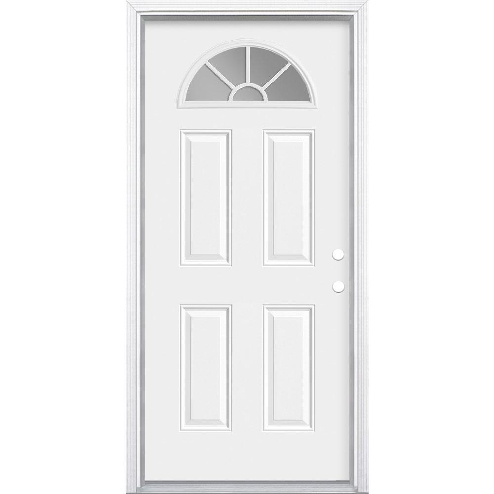 Masonite 36 In X 80 In Premium Fan Lite Left Hand Inswing Primed Steel Prehung Front Exterior Door With Brickmold 28072 The Home Depot