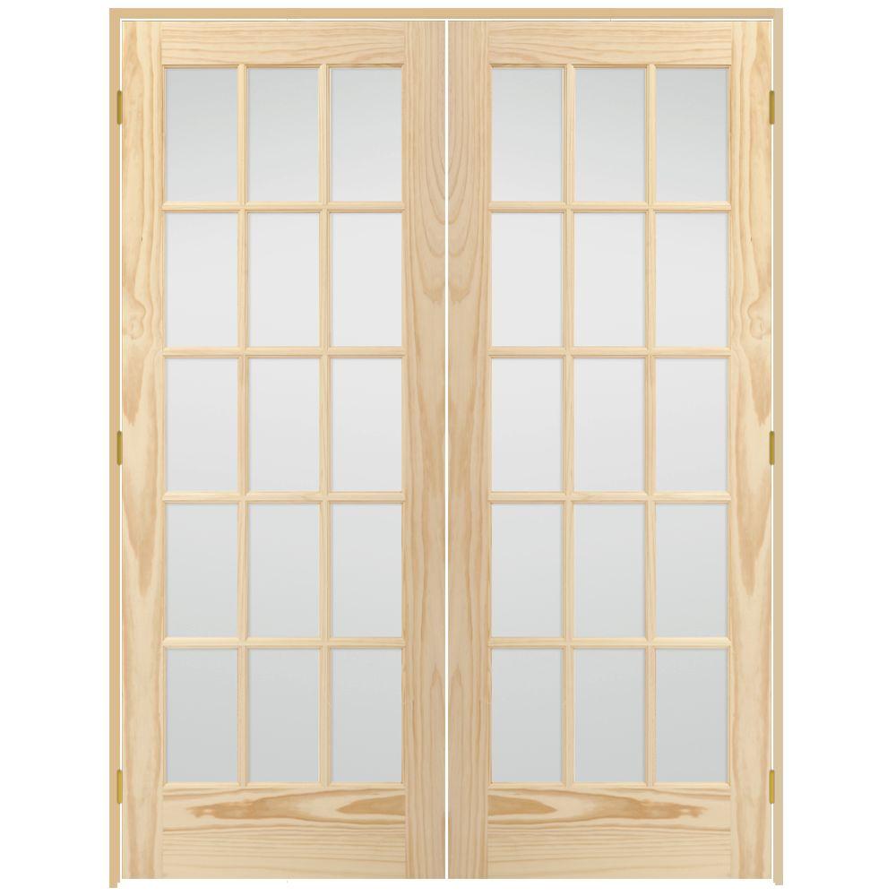 Mmi Door 60 In X 80 In Both Active Unfinished Pine Glass 15 Lite Clear True Divided Prehung Interior French Door Z019960ba The Home Depot