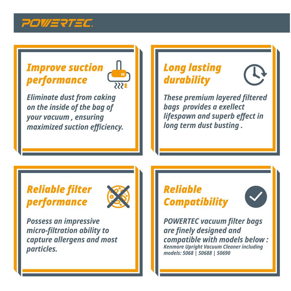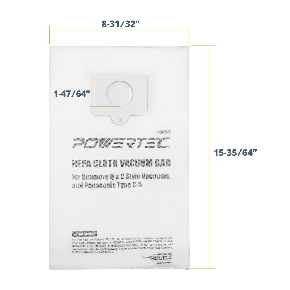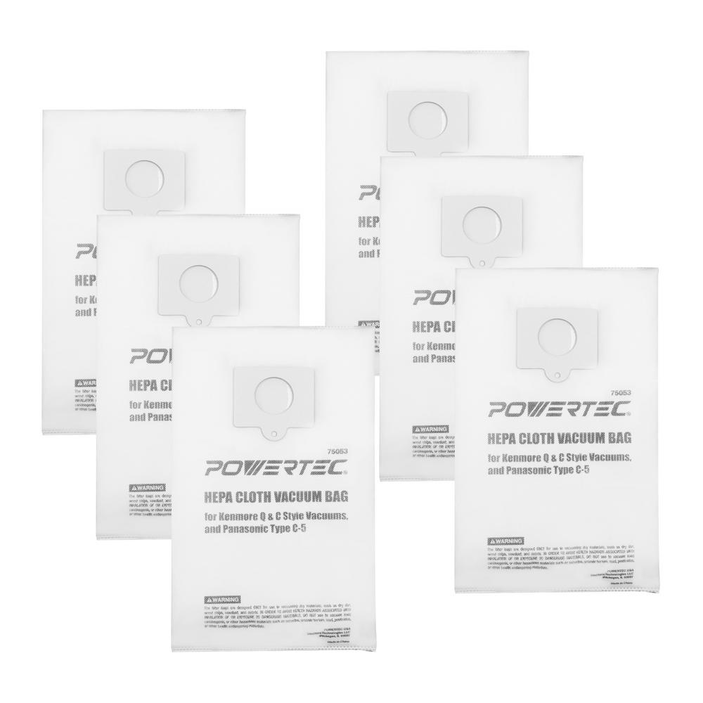 Powertec Hepa Cloth Vacuum Bag Replacement For Kenmore Q And C Style Vacuums And Panasonic Type C 5 6 Pack 75053 The Home Depot