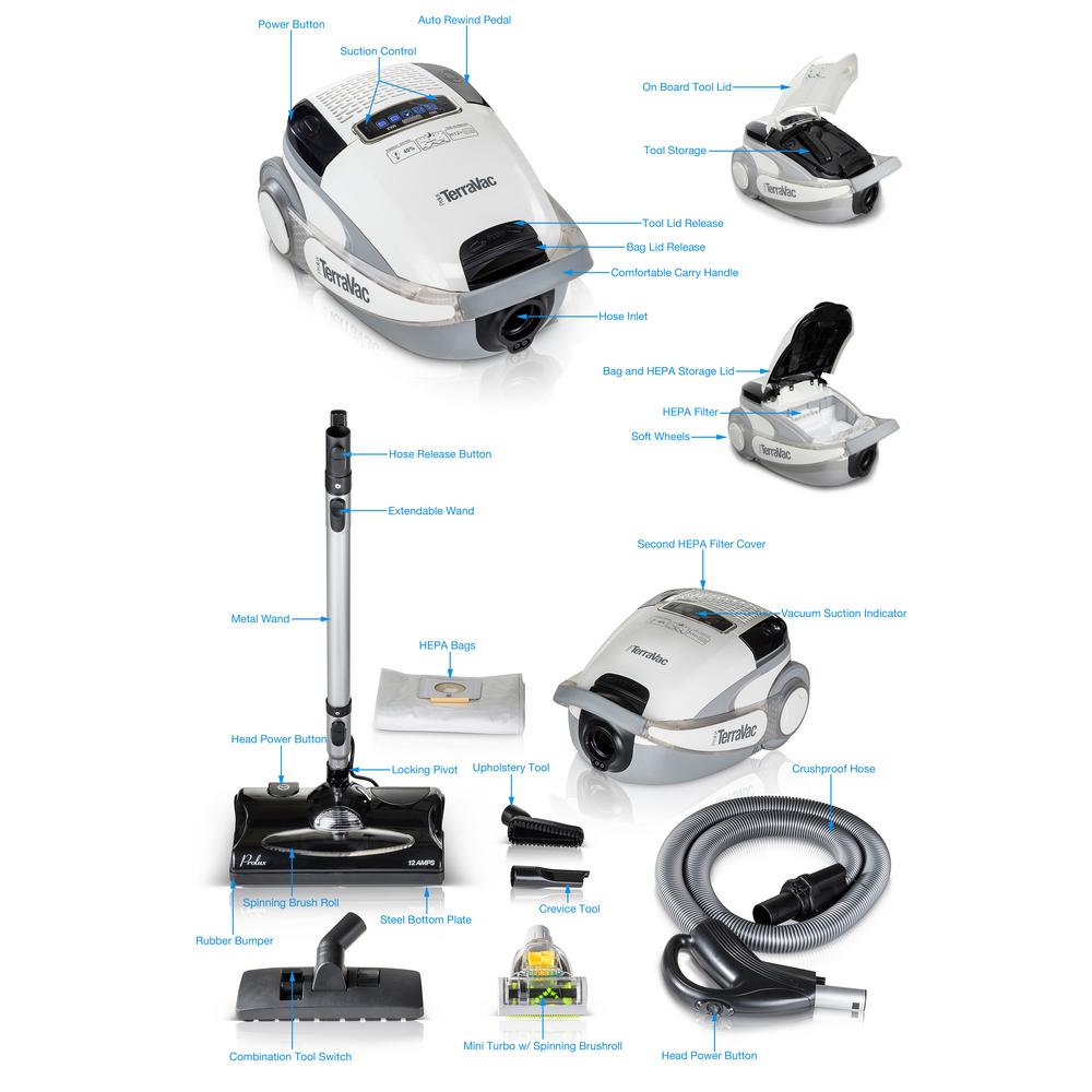 Prolux White Terravac 5 Speed Quiet Canister Vacuum Cleaner With Sealed Hepa Filter Prolux Terra W The Home Depot