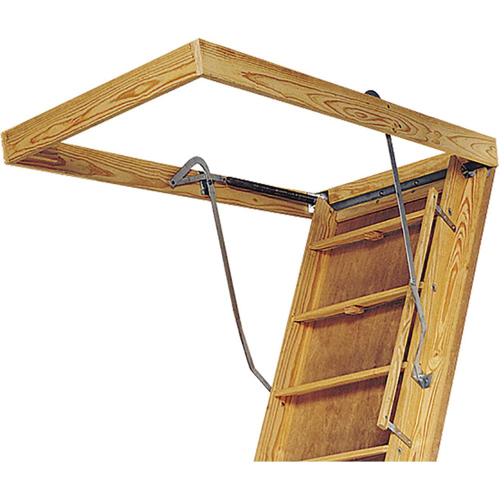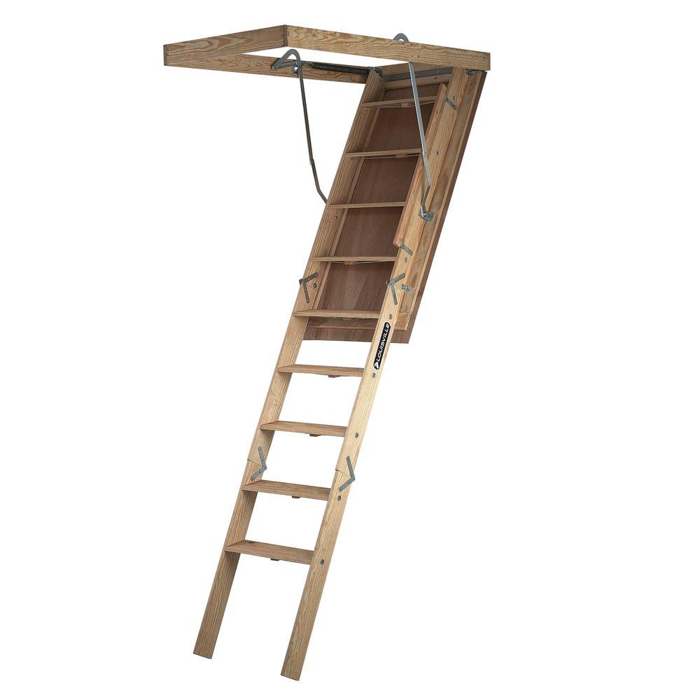 Louisville Ladder Champion Series 7 Ft 8 Ft 9 In 25 5 In X 54 In Wood Attic Ladder With 300 Lb Maximum Load Capacity Cs254p The Home Depot