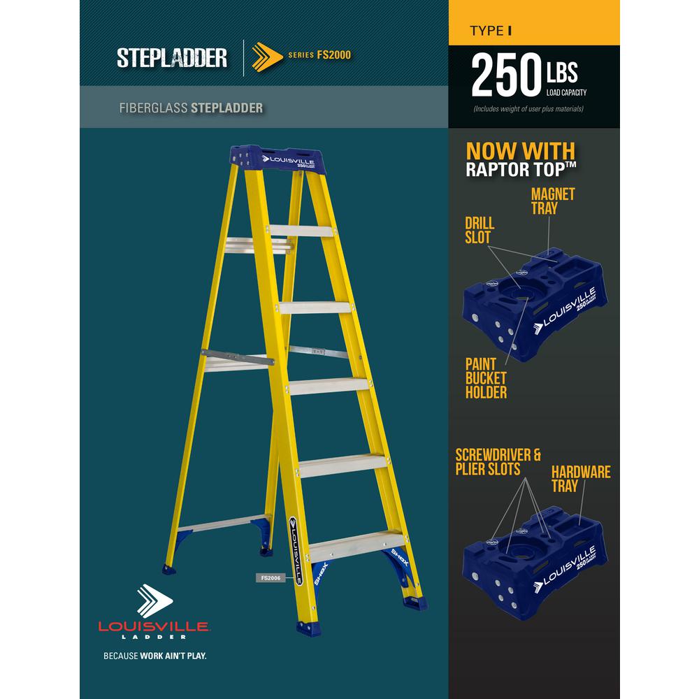 Louisville Ladder 6 Ft Fiberglass Pro Shelf Ladder With 300 Lbs Load Capacity Type Ia Duty Rating Fh1506 The Home Depot