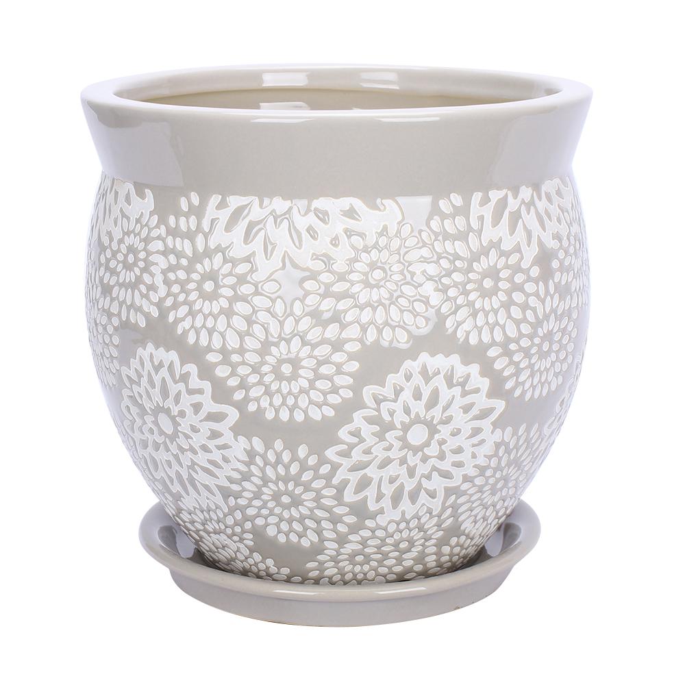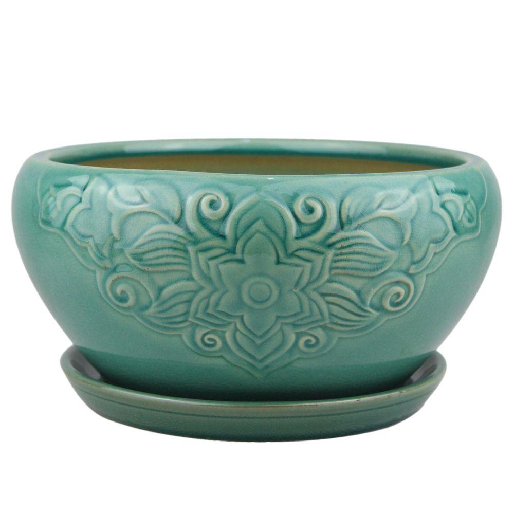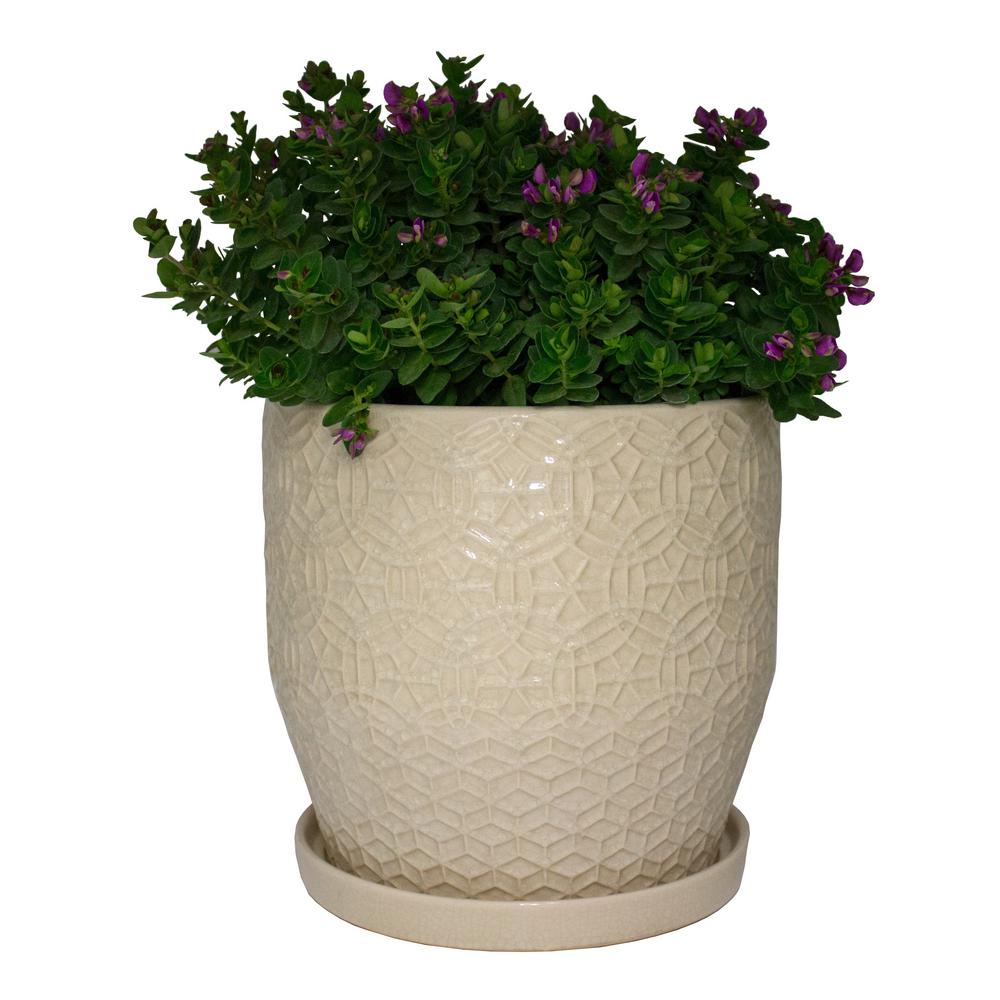 Southern Patio Reserva 12 In Dia Jade Ceramic Planter Crm 030829 The Home Depot