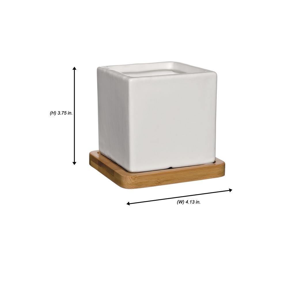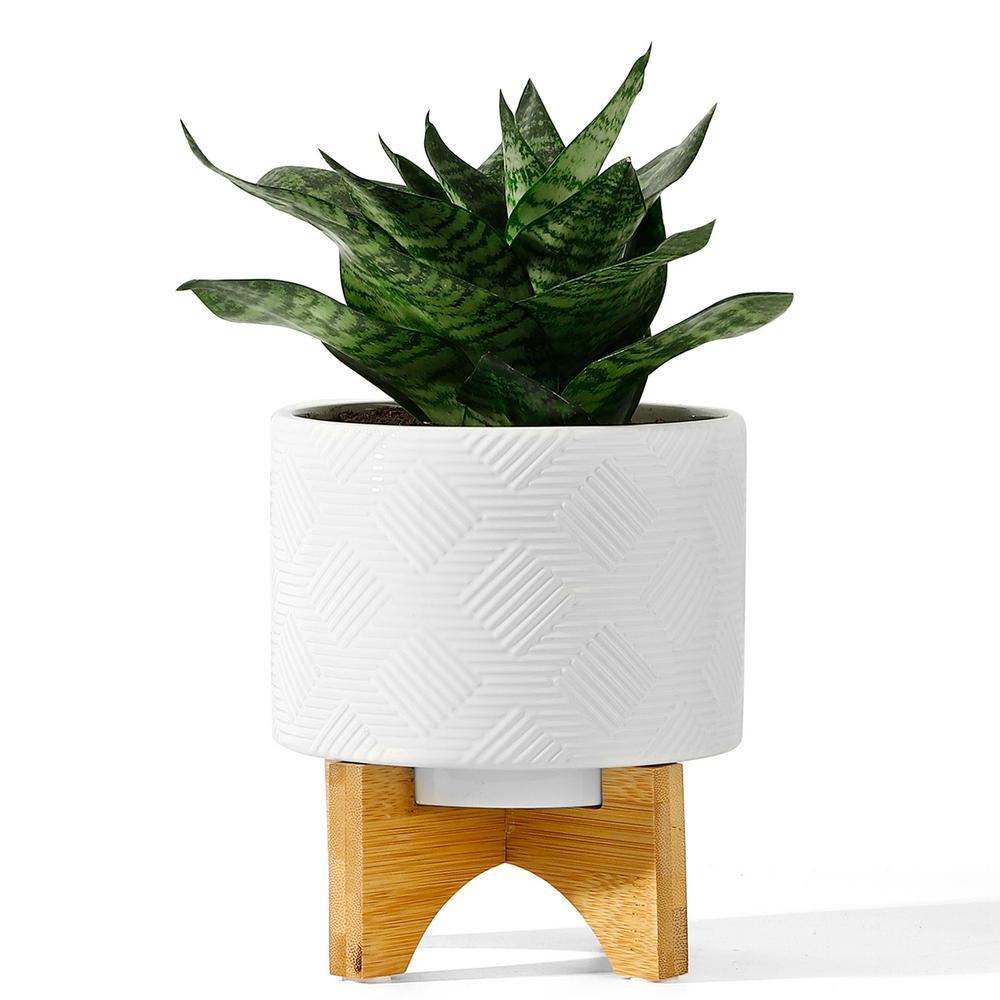 Potey 5 2 In Ceramic Mid Mentury Plant Pot With Wood Stand P294 The Home Depot