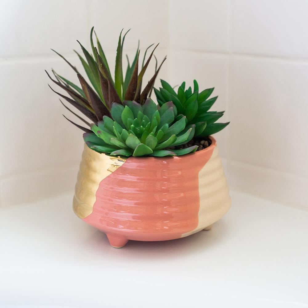 Flora Bunda 5 25 In 3 Tone Blush Ceramic Footed Planter Ct555e Blush The Home Depot