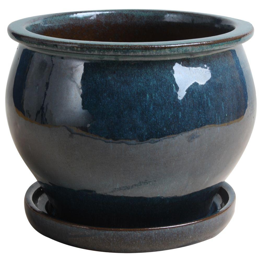 Trendspot 12 In Dia Blue Rivage Ceramic Planter Cr10853 12a The Home Depot