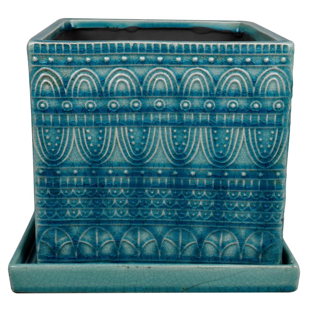 Trendspot 15 75 In Dia Ceramic Blue Lagos Square Planter Cr10008 16d The Home Depot In 2020 Square Planters Blue Ceramics Ceramic Plant Pots