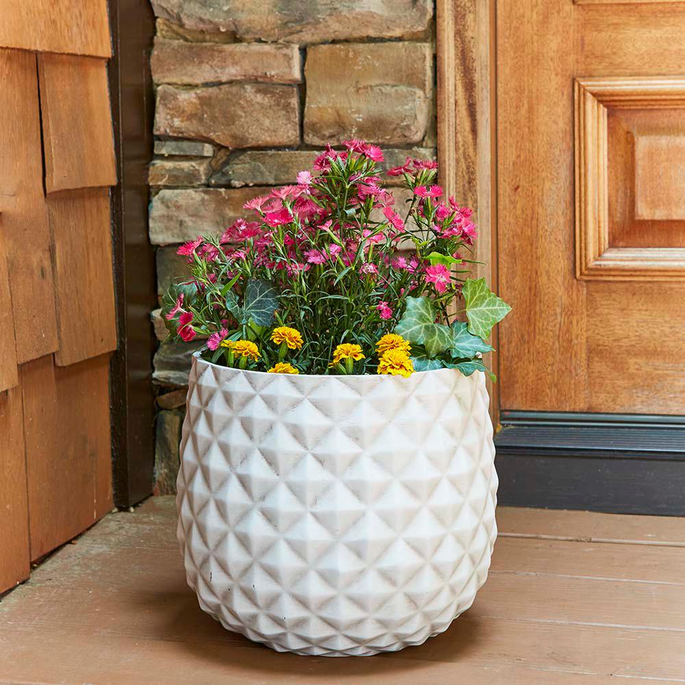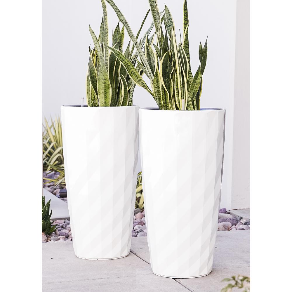 X Brand Xbrand 30 In Tall White Plastic Nested Self Watering Indoor Outdoor Diamond Look Round Planter Pot Set Of 2 Pl3554wt The Home Depot