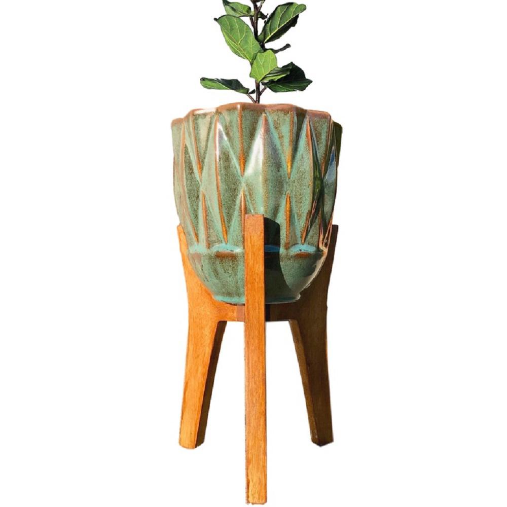 Southern Patio Contemporary 16 In W X 19 87 In H Resin Composite Planter With Wood Stand Cmx 049371 The Home Depot