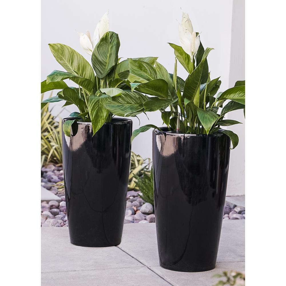 Unbranded 30 In Tall Black Nested Plastic Self Watering Indoor Outdoor Tall Round Planter Pot Set Of 2 Pl3585bk The Home Depot