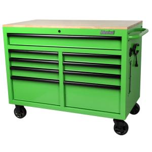 Husky 46 In W 9 Drawer Deep Tool Chest Mobile Workbench In Gloss Black With Hardwood Top H46mwc9xd The Home Depot