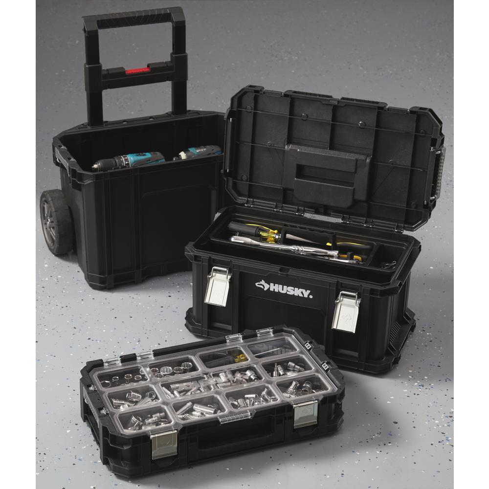 Husky 22 In Connect Rolling System Plastic Tool Box 230381 The Home Depot Mobile Tool Box Plastic Tool Box Tool Box
