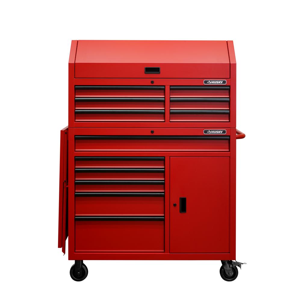 Husky 36 In W 12 Drawer Combination Tool Chest And Cabinet Combo In Gloss Red Uact H 360121 The Home Depot
