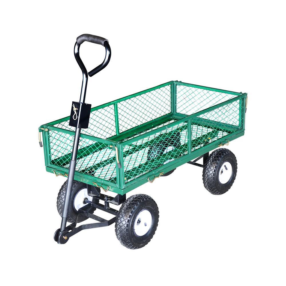 Unbranded Utility Metal Garden Cart With Adaptor Handle And 450 Lbs Weight Hauling Capacity Hd90014 Gn The Home Depot