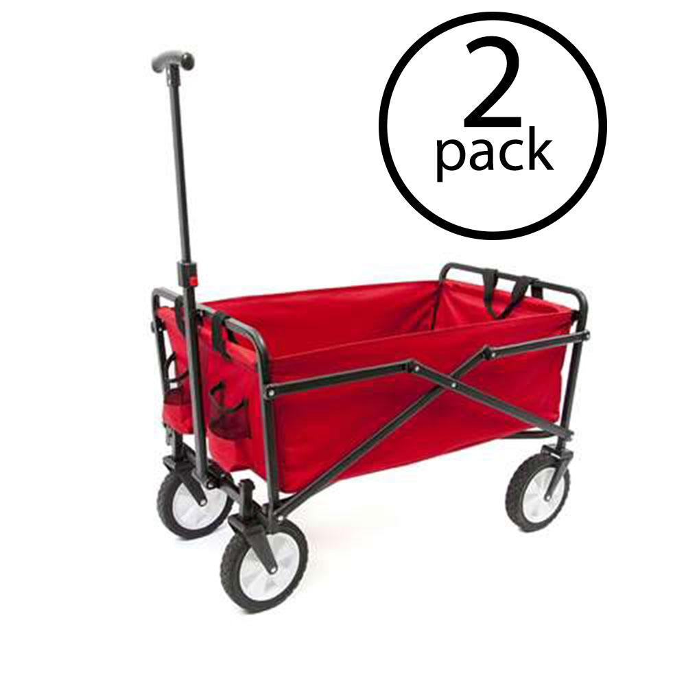 Mac Sports Collapsible Folding Outdoor Utility Wagon Cart W Table Red 2 Pack 114218 The Home Depot