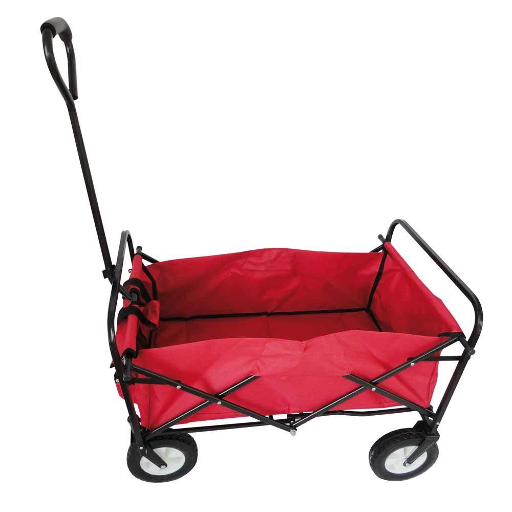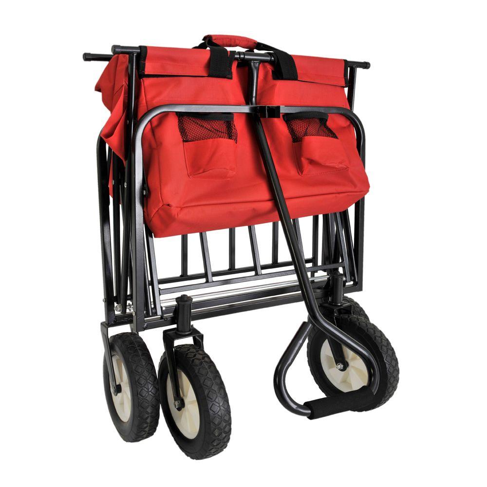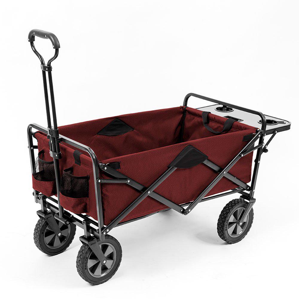 Mac Sports Folding Heavy Duty All Terrain Beach Wagon With Side Table Red Grey Mac Wtcb 117 Red Grey Table The Home Depot