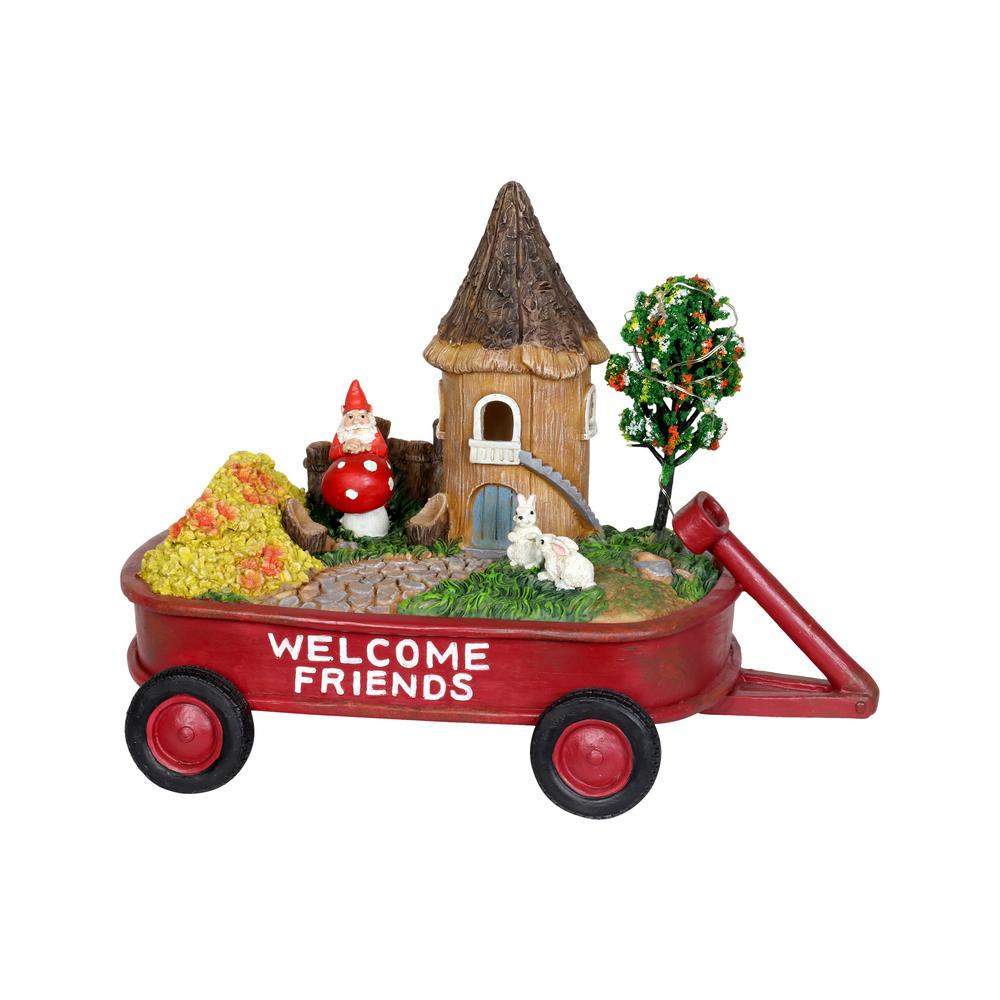 Exhart Solar Red Wagon Garden Statue 16047 Rs The Home Depot