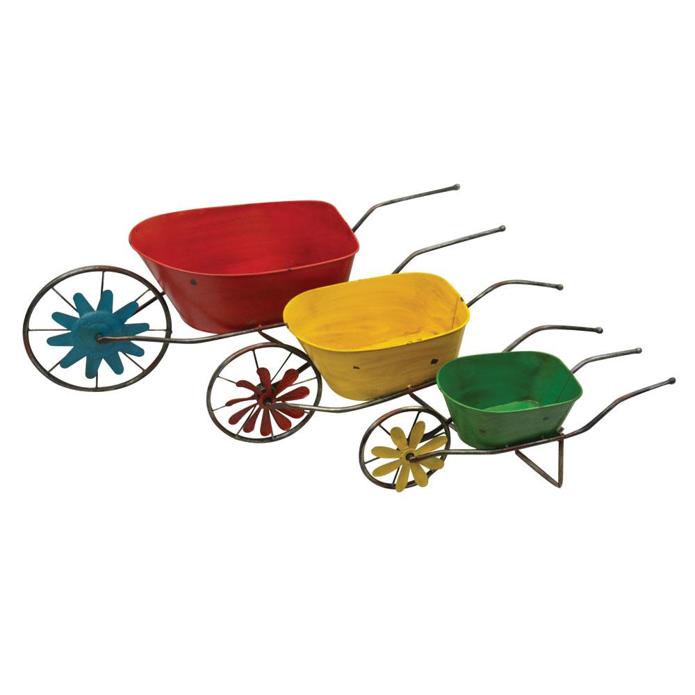 Unbranded Planters 3 Piece Nested Wheel Barrels 21031 The Home Depot
