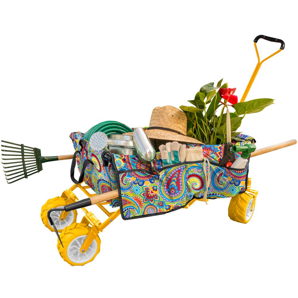 Creative Outdoor 7 Cu Ft Folding Garden Wagon Carts In Paisley Yellow 900268 The Home Depot