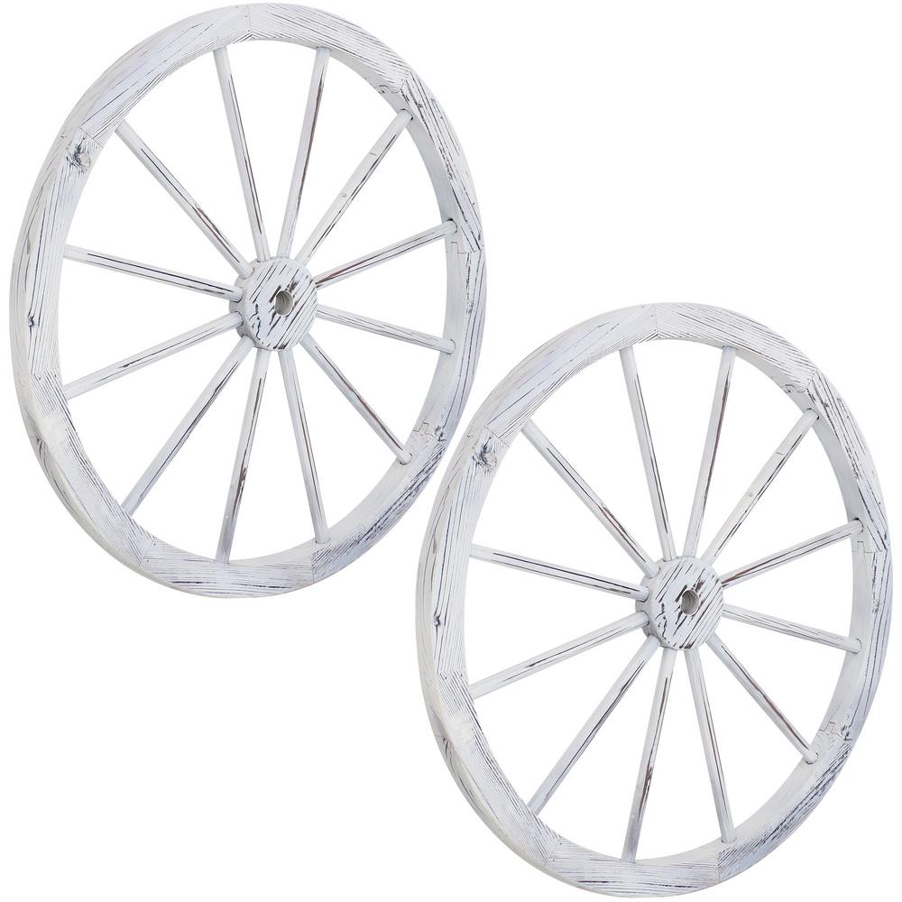 Trademark Innovations Decorative 24 In Dia Vintage Wood Garden Wagon Wheel With Steel Rim Wheel Wgn 2x The Home Depot