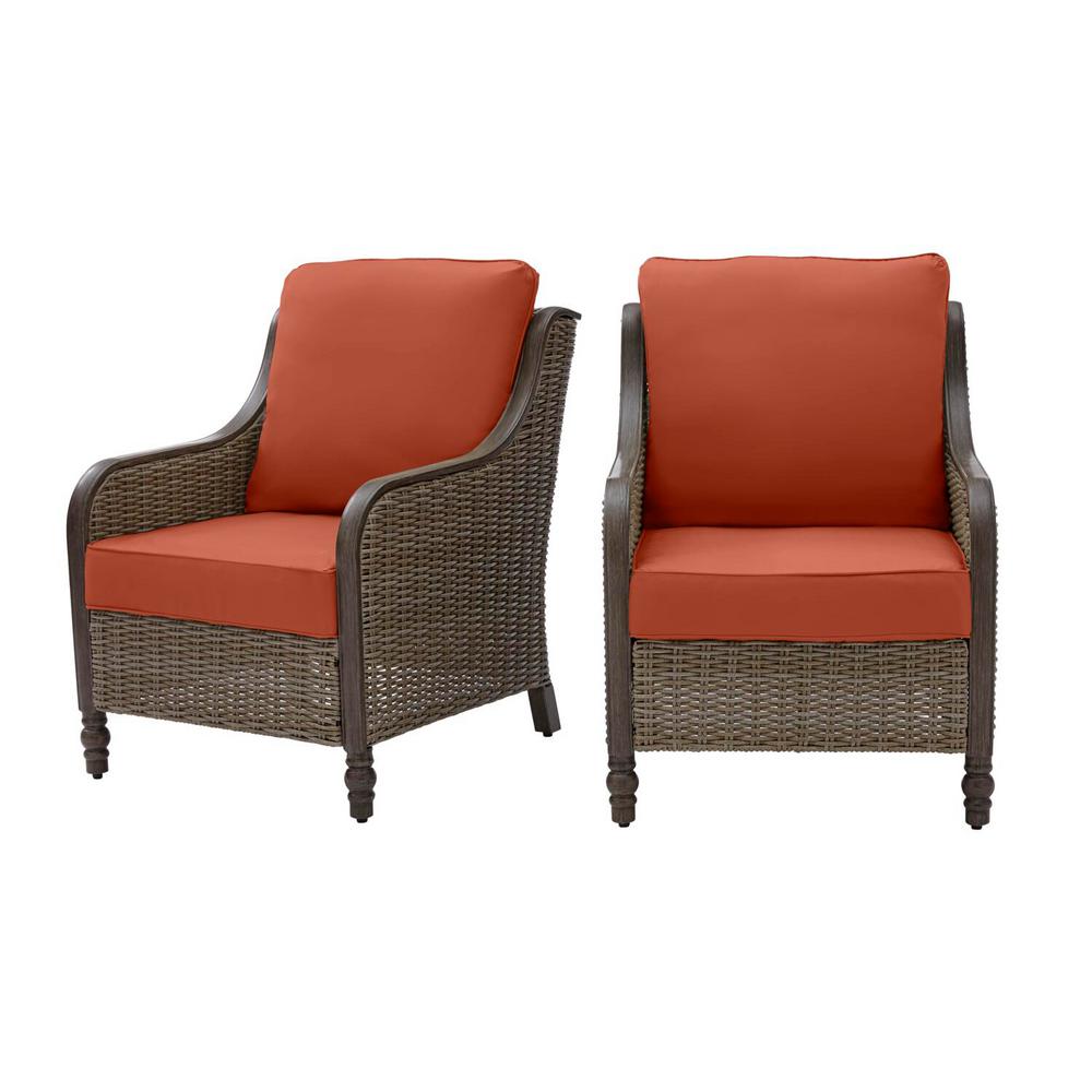 Hampton Bay Windsor Brown Wicker Outdoor Patio Lounge Chair With Cushionguard Biscuit Tan Cushions 2 Pack A211004300 The Home Depot