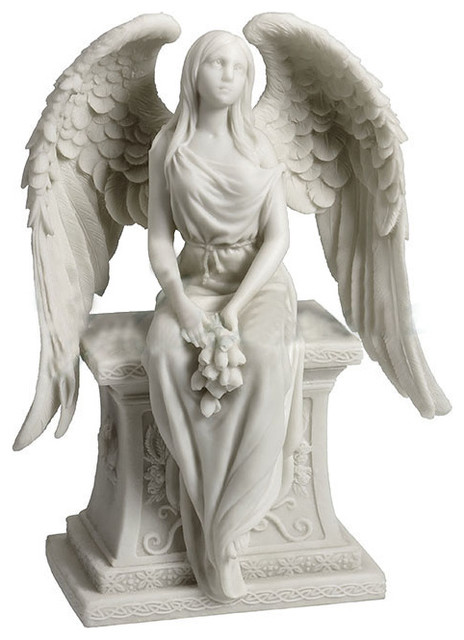 Angel With Roses Sitting On The Tombstone Marble White Religious Statue Traditional Decorative Objects And Figurines By Xoticbrands Home Decor