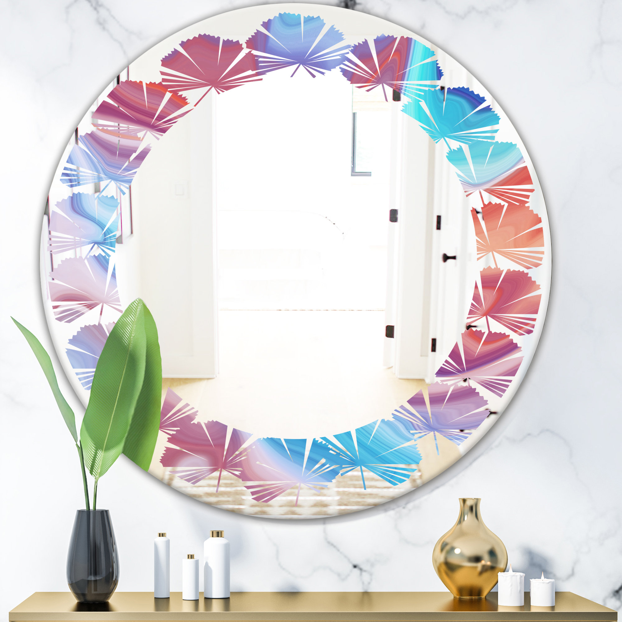 East Urban Home Abstract Marbled Background Leaves Coastal Frameless Wall Mirror Wayfair