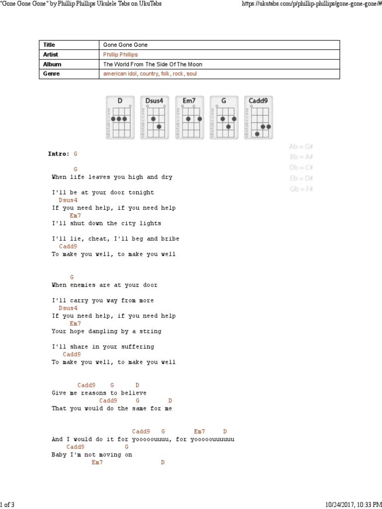 Gone Gone Gone On Ukulele By Phillip Phillips Ukutabs