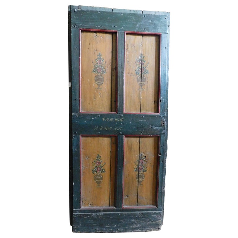 Antique Rustic Lacquered Interior Door Green Red Yellow 1700 Italy For Sale At 1stdibs