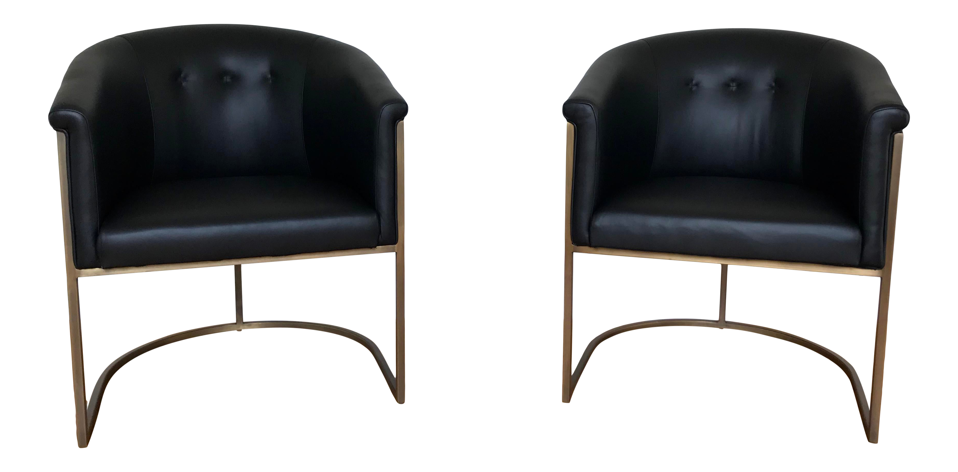 J L F Collections Black Leather Barrel Chairs A Pair Chairish