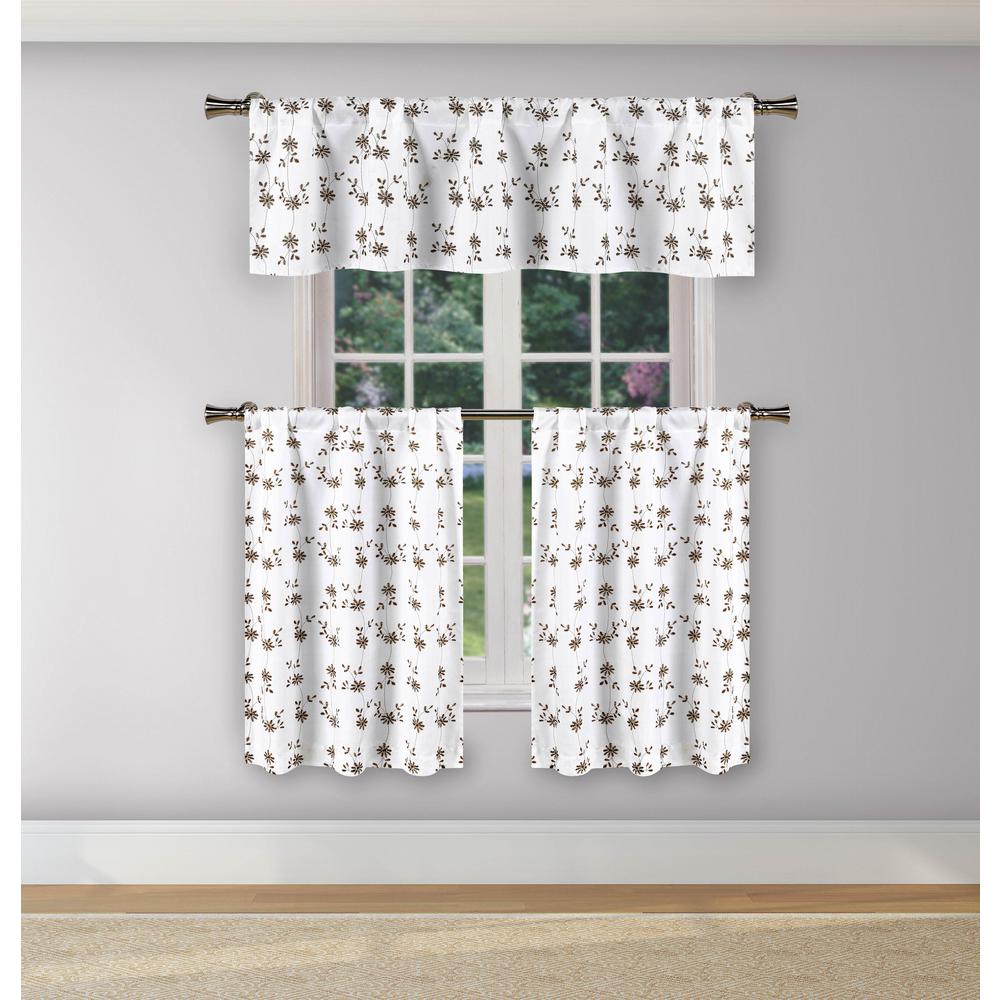Window Elements Semi Opaque Apple Time Embroidered 3 Piece Kitchen Curtain Tier And Valance Set Ymk004387 The Home Depot
