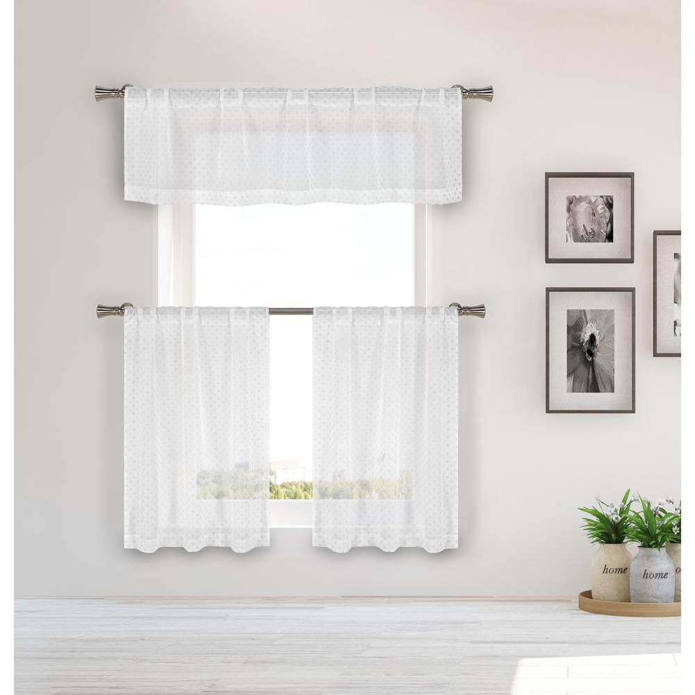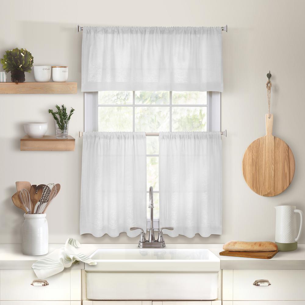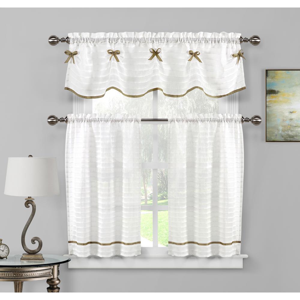 Home Maison Kira White Kitchen Curtain Set 56 In W X 15 In L In 3 Piece Kikwh 12 13938 The Home Depot