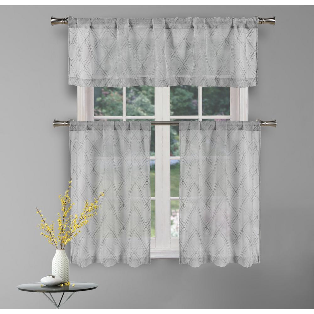 Kensie Adley Silver Kitchen Curtain Set 58 In W X 15 In L In 3 Piece Adknv 12 14018 The Home Depot