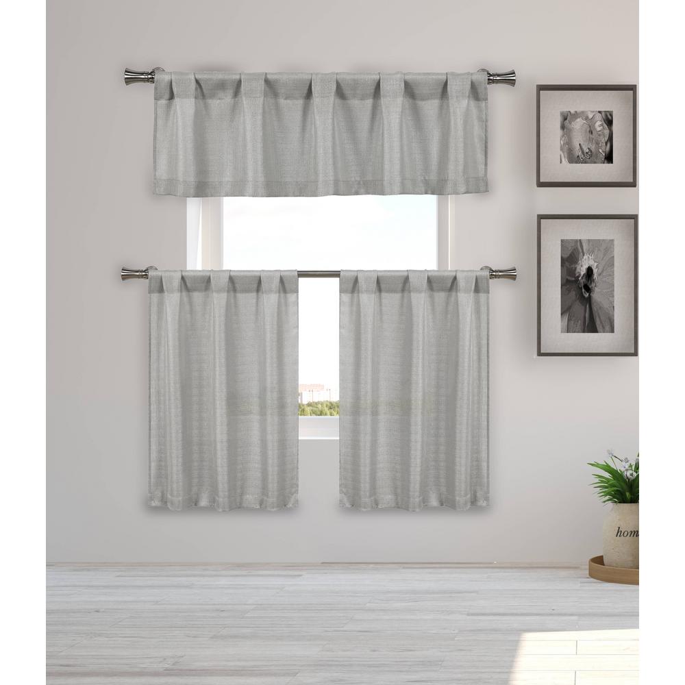 Home Maison Kealy Silver Metallic Kitchen Curtain Set 56 In W X 15 In L In 3 Piece Keksl 12 14174 The Home Depot